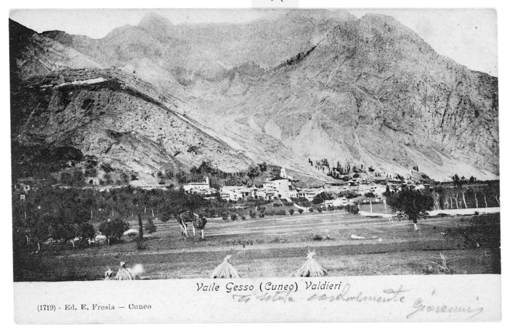 Il catasto napoleonico non consente di verificare quali fossero i tipi di coltivazione condotti all’inizio dell’Ottocento , tuttavia l’area di Valdieri era ancora largamente coltivata alla metà del Novecento, data a cui risalgono fotografie e cartoline che ritraggono un paesaggio ordinato e plasmato dalle cure dell’uomo, disegnato dagli alberi di gelso posti a delimitare i confini fra i campi coltivati e dalle file di covoni di segale.